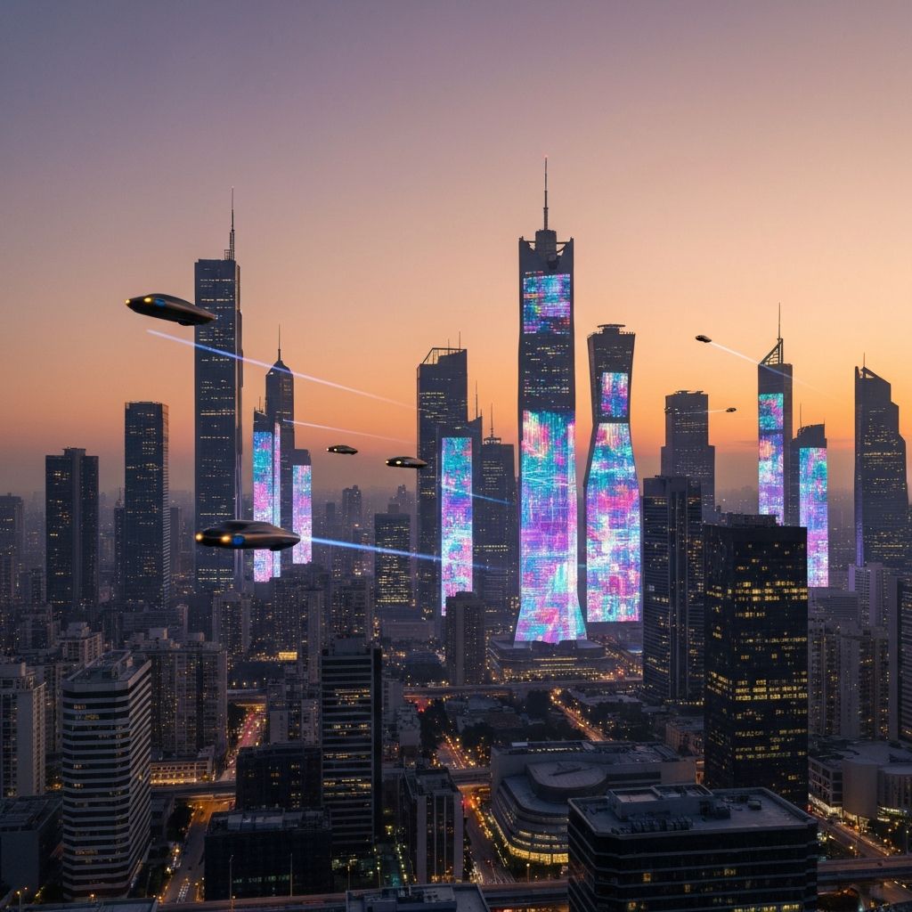 Futuristic eco-friendly approach to electricity using AI-optimized smart grids, renewable energy integration, solar-powered microgrids, predictive maintenance, and blockchain-based energy distribution.